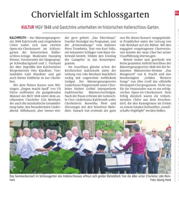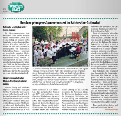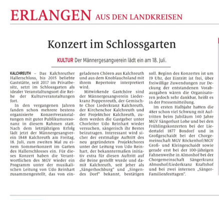 Der Erfolg unseres Konzerts im Schlossgarten am 18.Juli motiviert uns für neue Auftritte in der neuen Sängersaison.