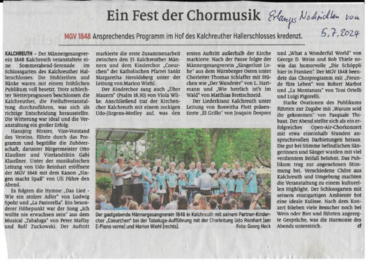 Großenseebach, Happy Voices-TonArt Uttenreuth und Viva Musica Neunkirchen, dem MGV Eckenhaid und dem MGV 1848 Kalchreuth. Gemeinsam mit einem 17-köpfigen Orchester und der Pianistin Beate Roux