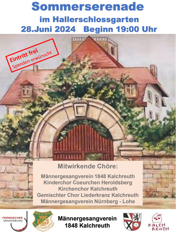 Nachdem die Chorproben bedingt durch die Corona-Pandemie mehrfach unterbrochen werden mussten, gehen nun die Vorbereitungen auf unser gemeinsames Konzert mit vier weiteren Chören in die Schlussphase. Die mehr als 100 Sängerinnen und Sänger aus Eckenhaid, Großenseebach, Kalchreuth, Neunkirchen und Uttenreuth freuen sich, dass es nun endlich bald soweit sein wird. Am Samstag, 17. September 2022 soll in der Heinrich-Lades-Halle in Erlangen das Chorkonzert mit Orchester stattfinden.